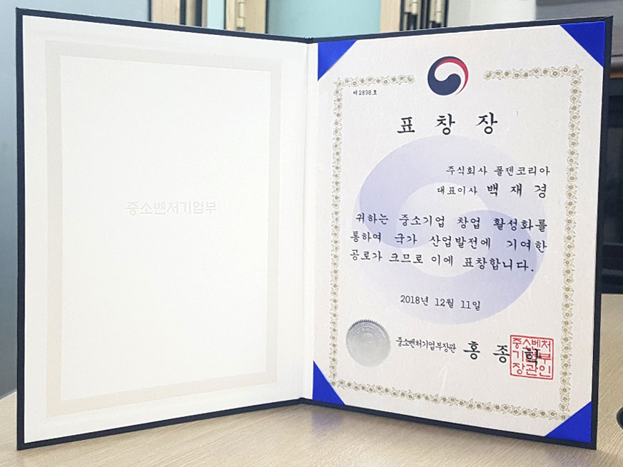 This time, we received the 22018 Venture Business Promotion Award Ceremony-Minister of Small and Medium Venture Business.