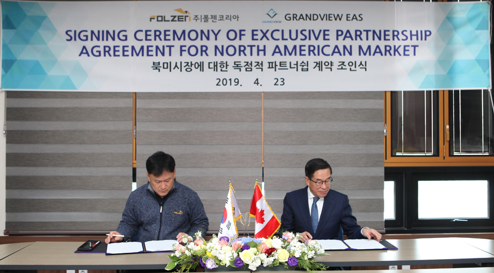 On April 23, Folzen Korea held a signing ceremony for an exclusive partnership with North American market with GRANDVIEW EAS in Canada.