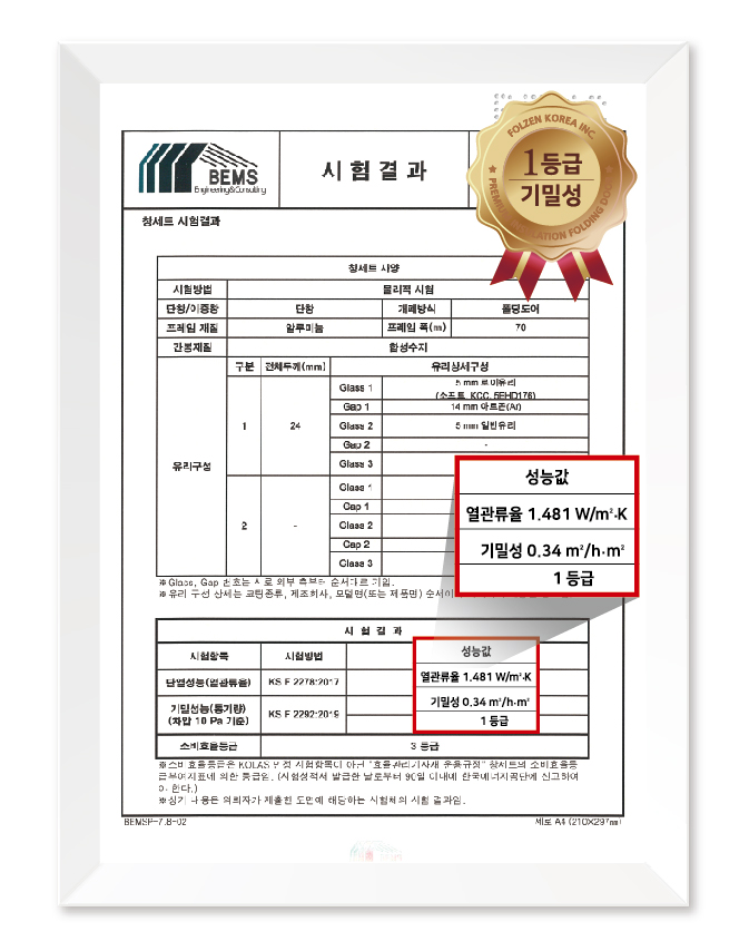 Even in the airtightness test, Folzen Korea's folding door is excellent in air permeability