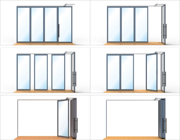 A premium movable partition system where independent frame panels move horizontally along rails, allowing flexible opening or separation of spaces.