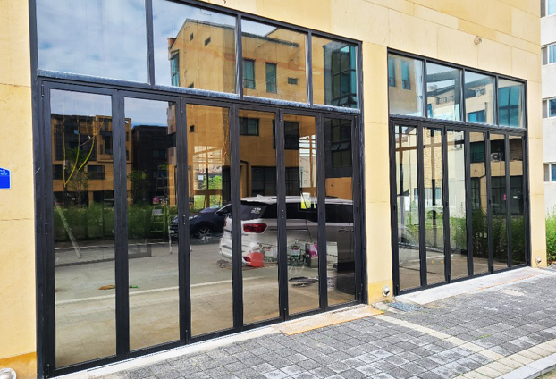 자동차 전용 스팀세차장 입니다. 자동차가 수시로 출입하는 곳으로 그에 알맞는 카센터용 하부레일로 진행을 하였습니다. 카센터 하부레일은 일반 폴딩도어 하부레일과 다르게 상단 부분을 날개형으로 설계하여 차량 통행시 부드러운 주행과 함께 하부레일 파손율도 낮췄습니다.