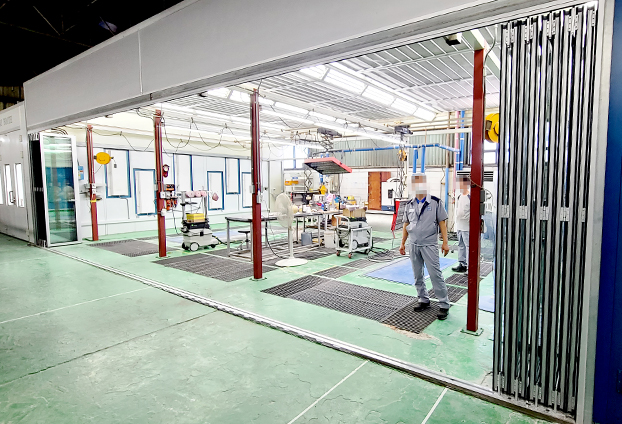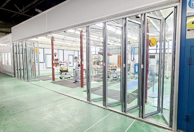 실내안에 있는 서비스 센터이지만 작업공간을 따로 분리 하기 위해 폴딩도어를 설치하였습니다.