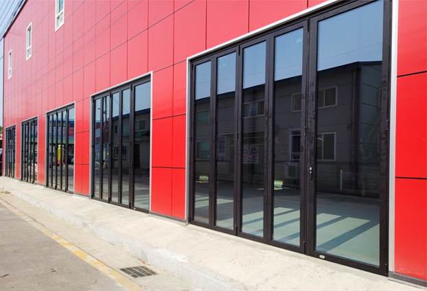 국내 업계 최초 "국제 공인 시험기관" 테스트 구조성 / 수밀성 / 기밀성을 통과한 폴젠코리아의 폴딩도어는 국가적으로 인정받았듯이 단열 / 방음 / 방풍 효과가 높아 매장 내부의 쾌적한 온도와 내부에서 발생되는 작업 진행 소리가 외부로 세어나가지 않기에 주변 다른 건물 및 회사 등에게 피해를 주지 않습니다.