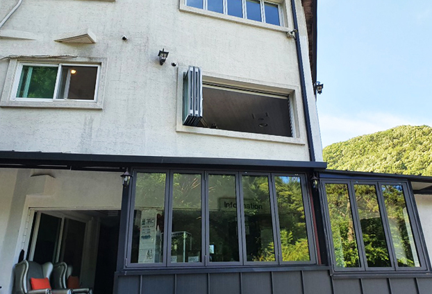 경치 좋은 위치에 자리한 펜션에 일반 창문은 고정이 되어있기에 멋진 풍경을 감상하기에 살짝 답답함과 이질감을 느낄수 있습니다. 90% 이상의 개폐율로 모두 접어 확 트인 시야감으로 멋진 풍경을 감상하며, 즐거운 여행과 휴식을 취할수 있습니다.