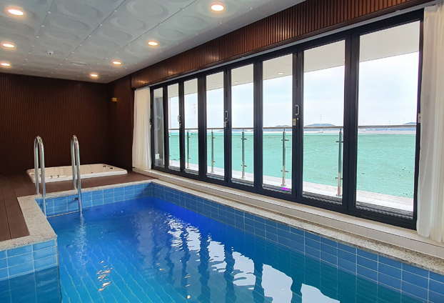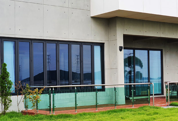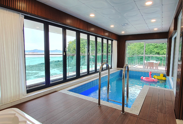 전 객실이 풀빌라로 구성된 리조트에 전망과 수영장의 습함, 환기, 통풍 등 실용성을 고려하여 폴딩도어를 설치하였습니다.