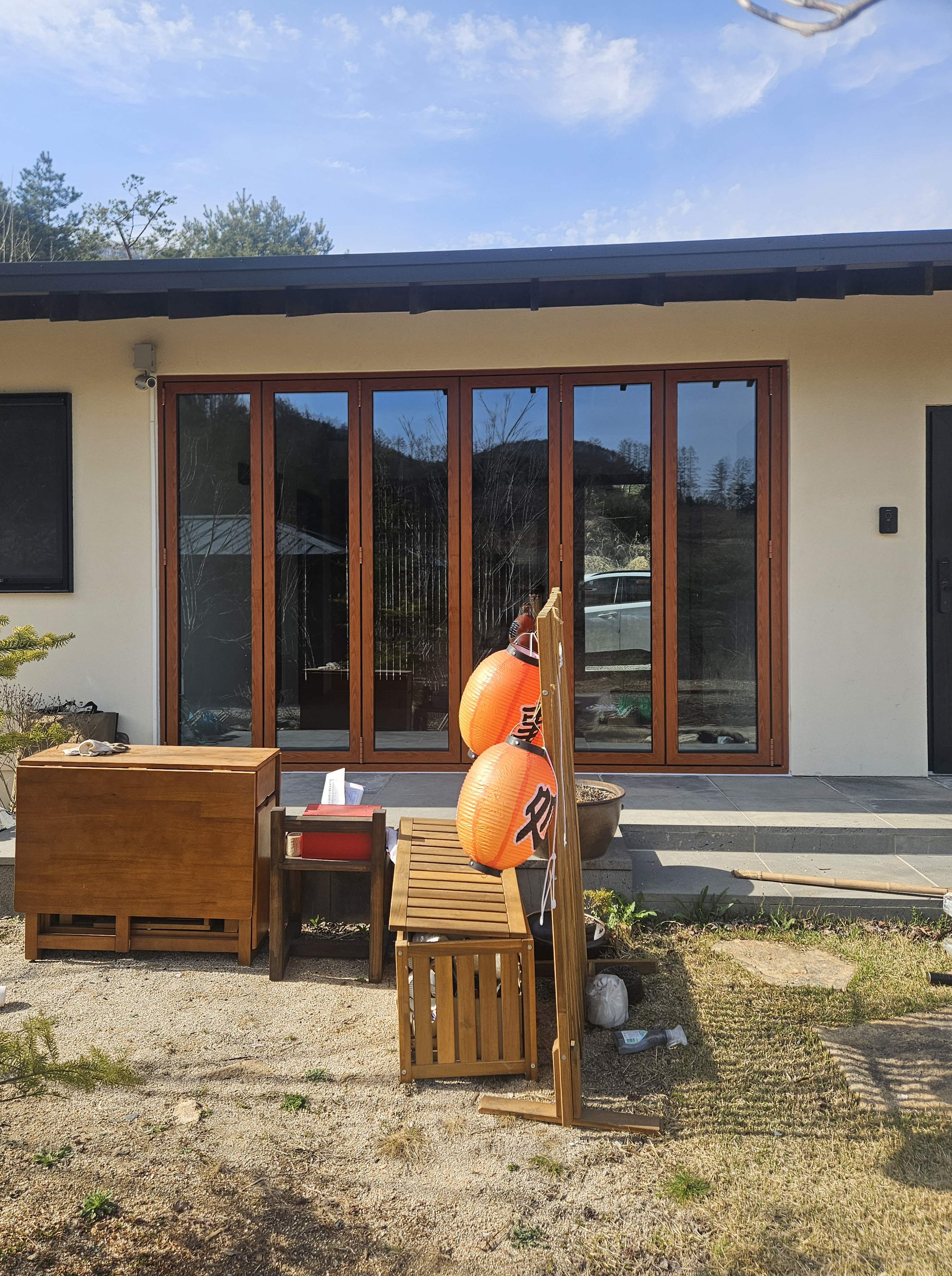 영월은 겨울에 매우 추운 지역으로, 산골짜기에 위치한 펜션에서의 단열은 매우 중요한 요소입니다. 이에 따라 폴젠코리아의 단열폴딩도어를 설치하여, 높은 열관류율과 기밀성 덕분에 겨울에도 따뜻한 실내온도를 유지할 수 있습니다.
