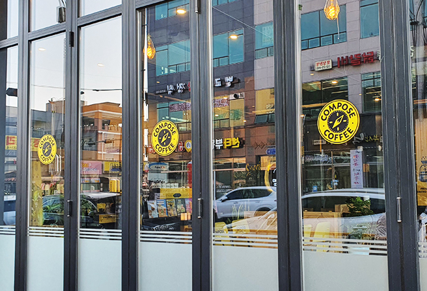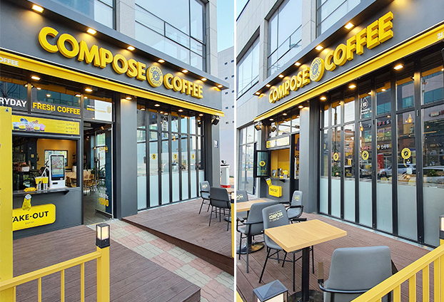 ▷ 인천시 서구 컴포즈커피 원창점 ◁ 넓은 개방감을 자랑하는 폴딩도어를 모두 오픈하여 편리하고 자유롭게 야외테라스 사용도를 높일 수 있습니다. 날씨가 좋은 날에는 폴딩도어를 열고 테라스에 테이블을 배치해 더욱 넓은 공간활용이 가능합니다.
