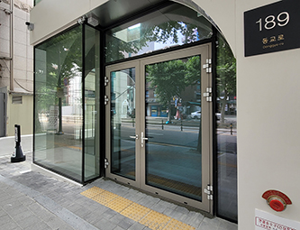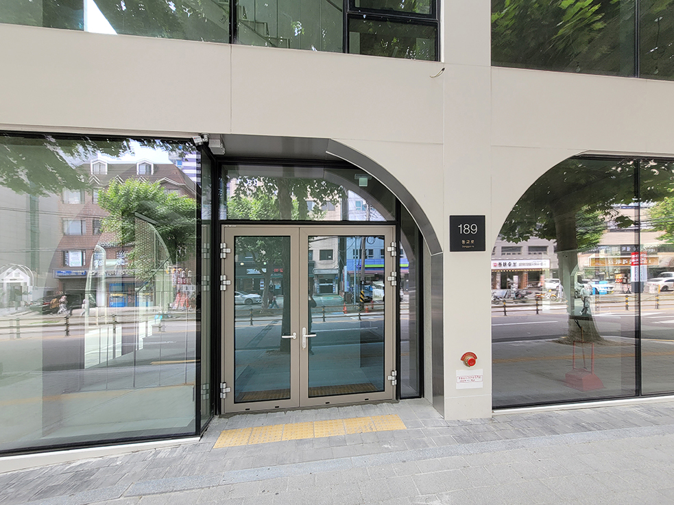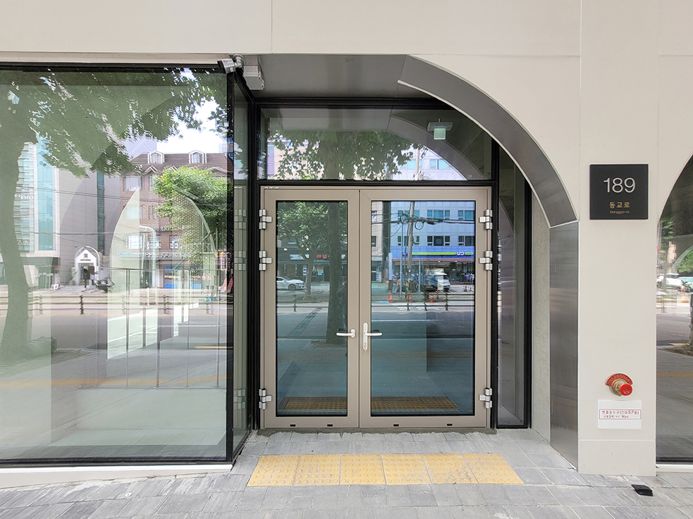 마포구 동교동의 5층짜리 신축 건물 상가 1층 출입문에 폴젠코리아의 시스템도어가 설치되었습니다. 시스템도어는 주거 및 상업용 시설의 현관문으로 널리 사용되며, 폴리아미드 단열재를 적용하여 뛰어난 단열성과 기밀성을 자랑합니다. 이러한 특성 덕분에 냉난방 효율을 높이고, 실내외 온도 차이를 효과적으로 차단할 수 있습니다.