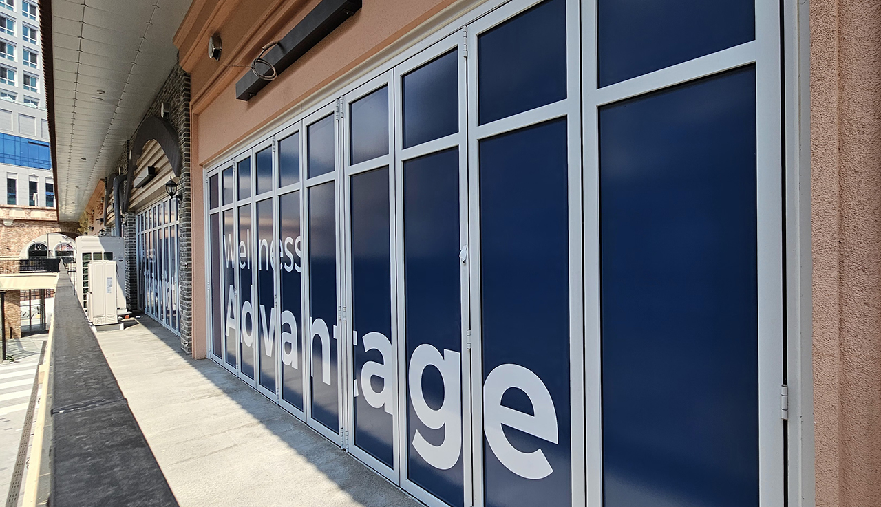 지식산업센터 2층에 새로 오픈을 한 건강검진센터입니다. 38장의 단열폴딩도어를 시공, 폴딩도어 위에 간판 시트지 작업을 하여 별도의 간판을 설치하지 않아도 멀리서 한눈에 알아볼 수 있습니다. 단열폴딩도어를 설치하여 외부 온도가 실내로 전달되는 것을 줄여주어 에너지 효율성을 높이고, 냉난방 비용을 절감할 수 있습니다. 단열이 잘 된 공간은 여름에는 시원하고 겨울에는 따뜻하게 유지되어 실내에서의 쾌적한 생활이 가능하며 온도 변화에 대한 저항력이 높아져 보다 편안한 환경을 제공합니다.