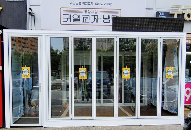 주메뉴 특성상 만두를 찌면서 생기는 김과 수증기 등을 넓은 개폐율인 폴딩도어를 개방하여 외부로 바로바로 빠지게 할수 있으며, 그로인해 상점 내부 관리가 수월해집니다. 또한 폴딩도어의 여닫음으로 상점 오픈 됨을 알릴수 있으며, 순조로운 판매가 가능합니다.