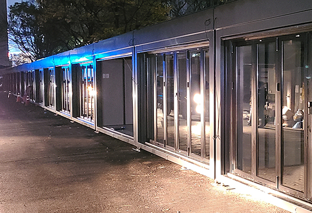부스에 폴딩도어를 설치하여 출입문 또는 접이식 외벽으로 넓은 확장감을 주어 상품을 판매하는데 더욱 넓은 공간과 더욱 넓은 출입공간으로 손쉽고 수월한 동선으로 행사를 진행할 수 있습니다.