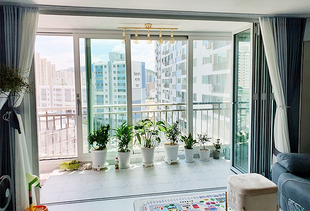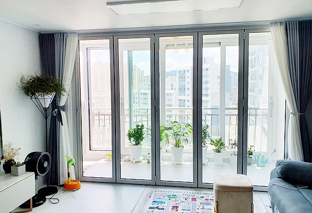 화초를 좋아하시는 고객님으로 베란다를 화원으로 꾸밀 계획을 가지고 계셨습니다. 아무래도 화초를 가꾸다보면 작은 화분도 있지만 큰 화분도 있을꺼고, 이런 저런 많은 것들이 필요합니다. 그런 물건들을 이동할때 통유리창은 이동함에 불편함을 크게 느끼셨던 고객님께서 저희 폴젠코리아에 시공 상담과 의뢰를 하셨습니다.