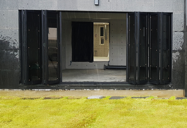 폴딩도어 시공 위치는 전원주택의 자랑인 넓은 마당과 주택을 연결하는 중문 입니다. 작은 문 하나로 마당과 집을 오가는 주택이 많습니다. 이 전원주택은 문보다는 실내 베란다와 실외 마당에 폴딩도어를 설치하므로써 더욱 넓은 공간확장의 효과와 넓은 개방감으로 통행이 가능하게 되었답니다.