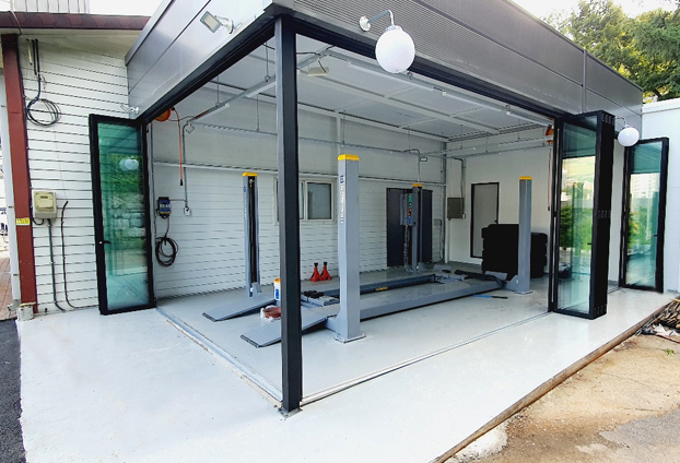 예전의 카센터들은 위아래로 여닫었던 일반 셔터문으로 넓은 출입구를 만들어 운영을 해왔습니다. 하지만 셔터문 특성상 필요시 매번 열고 닫고 하기는 힘듭니다. 닫아버리면 불투명인 셔터문으로 영업을 하지 않는걸로 방문객들이 인식을 해버리는 경우가 많습니다. 그래서 한번 오픈을 하면 영업시간이 끝날때까지 닫지 않고 운영을 하였습니다. 그러다보니 날씨가 춥거나 덥거나 비가 오거나 눈이 오거나 바람이 불고 하는 날씨가 좋지 않은날에도 차단하지못하고 작업자들은 외부에서 작업하듯이 온몸으로 받아드리곤 하였으며, 작업을 하지 않을시에도 열어두서야만 했습니다.