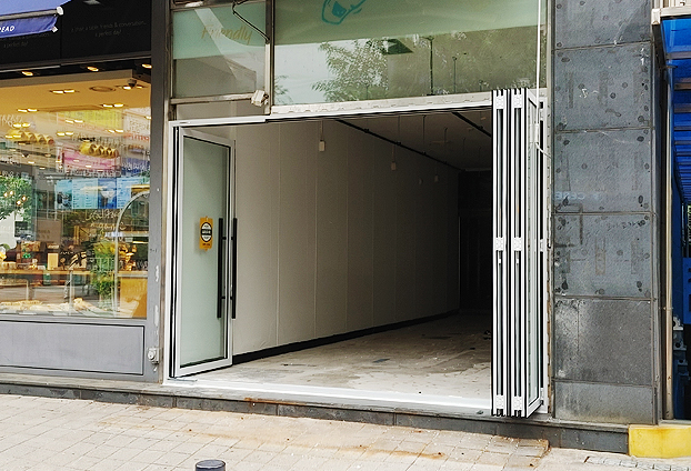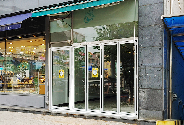 이전 매장에는 픽스창과 일반여닫이 문으로 시공이 되어 있었습니다. 이번에 임대하시는 사장님께서 매장 인테리어 시공하시면서 취향에 따라 픽스창을 제거하고 폴딩도어로 교체시공 하였습니다. 또한 폴딩도어의 활용도, 사용도, 인지도가 높아지면서 신축인 상가에서부터 폴딩도어를 시공하고 임대를 내놓는곳이 많아지고 있습니다.
