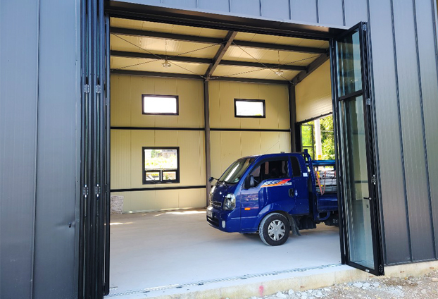 폴딩도어를 모두 개폐하면 공간 확장의 효과로 내부의 작업 공간에 답답함이 적습니다.