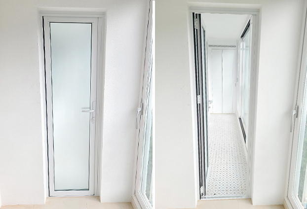 하부레일은 주거지에 맞는 슬림형 하부레일로 시공을 하였습니다. 일반형(기본) 하부레일은 바닥 표면 위로 돌출 되는 부분이 대략 3cm 정도 입니다. 그런 부분에 신발을 신지 않고 생활 하는 아파트(주거지)에서는 불편함을 느낄수 있습니다. 통행시 신발 미착용으로 하부레일에 발걸림 사고가 생긴다면 심하면 큰 부상까지 이어질수 있습니다. 베란다 쪽 장소에 큰 물건을 옮길때 표면 위로 올라온 하부레일로 그 또한 힘이 더 들수 있습니다.