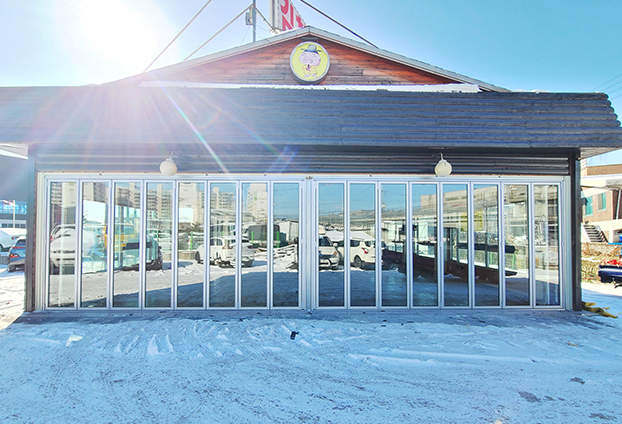 1층 독단건물이였던 김치찌개,낚지볶음 전문점이였던 음식점을 인수하여 카센터로 업종 변경 중 입니다. 카센터에 딱 맞게 넓은 평수이며, 차량이 편하게 출입할수 있도록 넓은 출입구를 위해 폴딩도어를 한쪽 벽면을 철거한 후 폴딩도어를 시공하였습니다. 또한 기존 픽스창과 터닝도어 출입문이였던 곳도 철거한 후 폴딩도어를 설치하여 더욱 넓은 출입구로 시공을 하였습니다.
