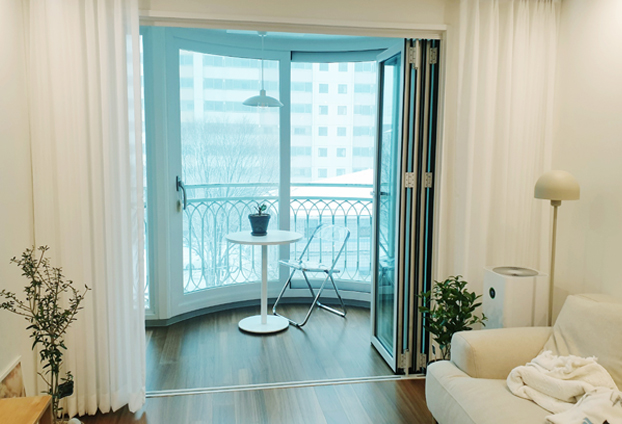 베란다 확장을 하여 더욱 넓은 거실 공간을 사용 중이시지만, 외부에서 유입되는 기온과 소음, 바람 등에 불편함을 느끼시는 분들!!