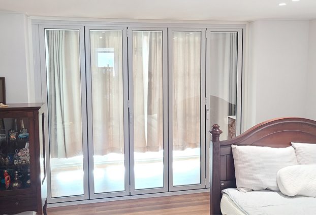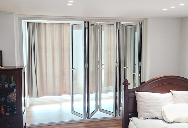 가정집 폴딩도어는 대표적으로 거실과 베란다 중문으로 폴딩도어를 설치하여 사용합니다. 하지만 방과 연결되어있는 베란다에도 폴딩도어를 설치하여 사용하시는 분들이 점점 늘어나고 있습니다. 베란다 중문으로 사용했던 폴딩도어의 많은 장점을 방안에서도 편리하게 사용을 할수 있도록 설치를 하십니다.