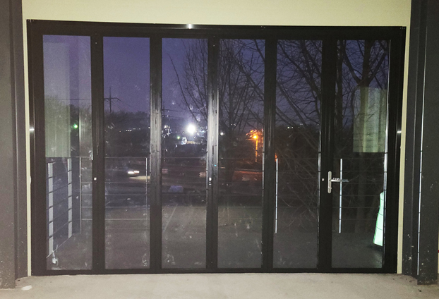 외부에 노출되는 폴딩도어로써 외부의 환경적인 기온과 날씨변화가 실내 안으로 유입되지 않도록 단열 폴딩도어 프레임으로 제작하였으며, 같은이유로 외부의 환경적인 요인으로 오염이 되기 쉽기 때문에 프레임 색상 역시 오염에 강한 블랙 색상으로 진행하였습니다. 분체도장방식이 아닌 불소수지 도장방식으로 프레임 도장을 진행하기에 오래 사용하여도 도장의 들뜸과 벗겨짐, 변색 등이 없으며 색상의 내구성을 더욱 높였기에 A/S 현상을 최소화 하였습니다.