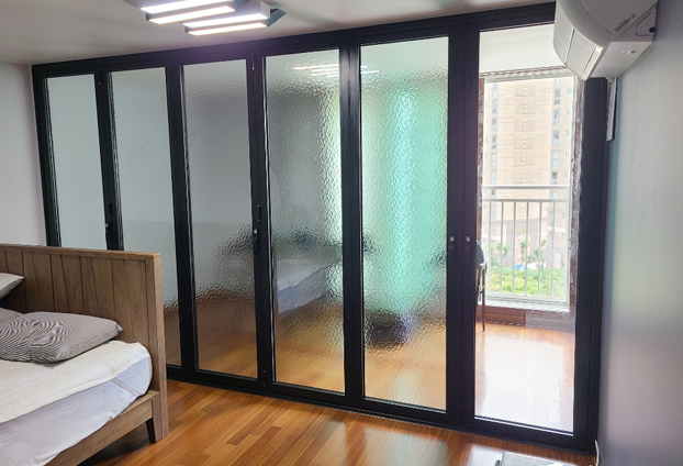 이번 시공한 현장은 입주 전 전체 인테리어 시공과 함께 시공된 경우가 아니라 이미 베란다 확장을 하여 거주하시고 계셨습니다. 확장하여 더욱 넓은 평수의 방으로 생활이 가능하지만, 외부에서 유입되는 기온 때문에 불편함을 느끼시다 폴딩도어 설치로 공간 구분과 확장을 하여 생활 하실수 있게 되었습니다.