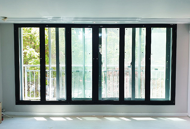 블랙 색상의 프레임으로 양개형 구동방식으로 진행하였으며, 유리는 16t 복층유리로 더욱 단열효과를 높였으며, 그린+투명 유리 색상으로 창으로 전달되는 외부 모습을 더욱 싱그럽고, 상쾌하게 보이도록 하였습니다.