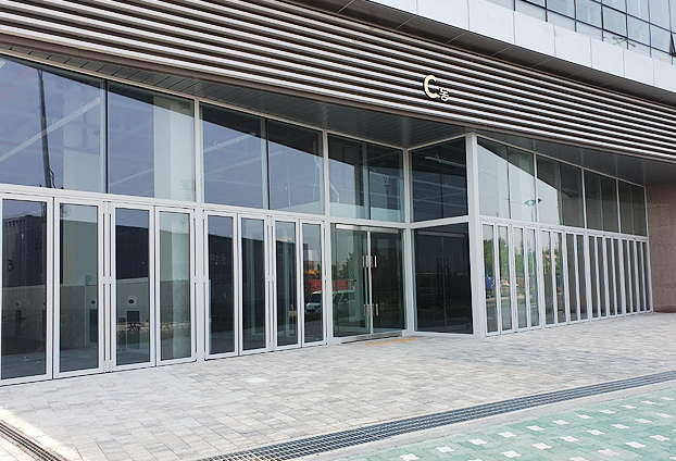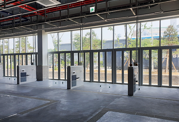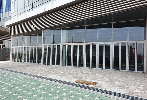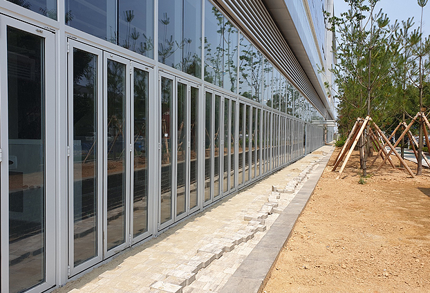 반년 정도의 시간동안 시공을 하여, 시공 기간이 오래걸린거 아닌가? 하는 생각이 드실수 있지만, 어마어마한 크기의 신축 회센터로써 시공된 폴딩도어 장수만 550여장이 설치되었습니다.