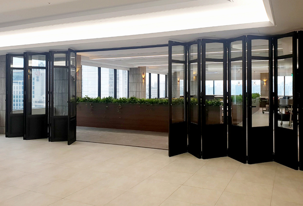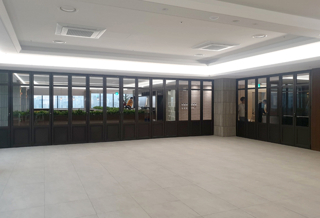 실외에 설치를 하였다면 외부의 기온이 유입됨을 차단하기 위해 단열폴딩도어를 시공 하지만, 모두 실내 안에 시공되기에 일반형 비단열 폴딩도어로 진행하였습니다.