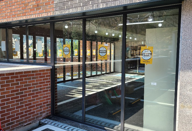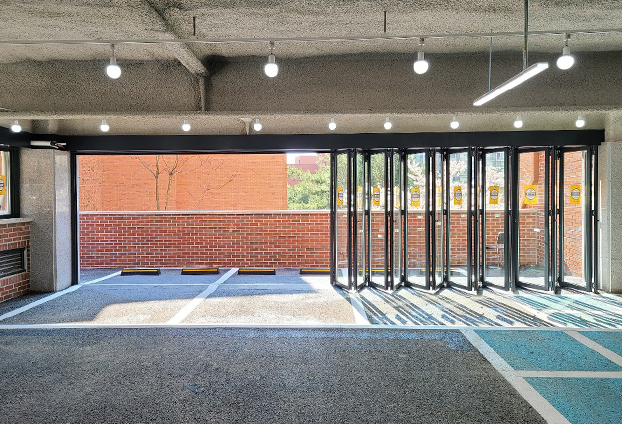 실내 주차장과 외부 주차장 구분과 실내 주차장 안쪽 차량 보호를 위해 폴딩도어를 설치하였습니다.