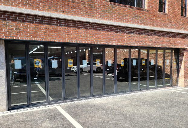 외부에 설치하는 폴딩도어로써 오염에 강한 블랙 색상으로 시공하였습니다. 외부에 있으면 아무래도 외부적인 환경에 쉽게 오염이 묻고 하여, 블랙 색상을 많이 선택하시곤 합니다.