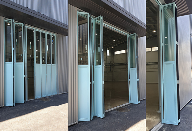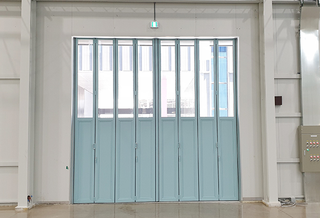 문 사이사이 고무가스켓으로 마감하였기에 밀폐성이 뛰어납니다. 그렇기에 넓은 개방감이 있는 출입문 중에 외부의 기온과 바람 등을 공장 내부도 유입되지 않도록 차단하는 단열성이 높습니다.