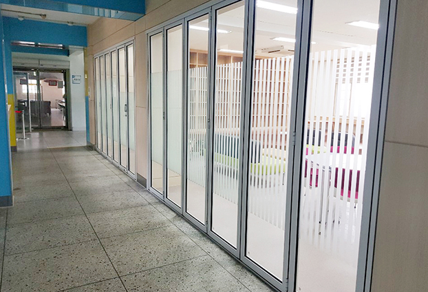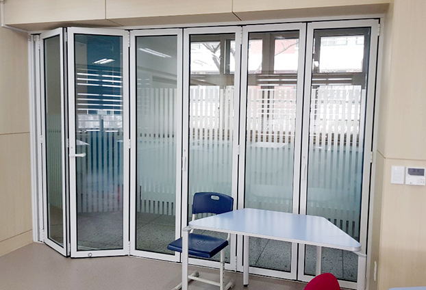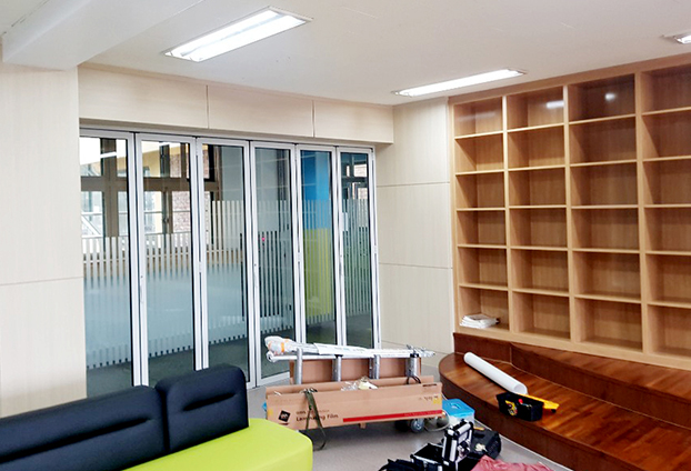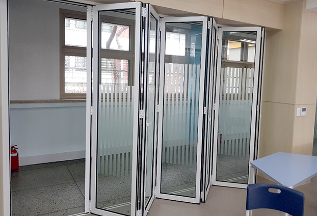 아파트, 주택 등등 주거 공간과 사무실, 상가, 펜션 등등 늘어나며, 요즘 학교에도 폴딩도어 시공이 늘어나는 추세입니다.