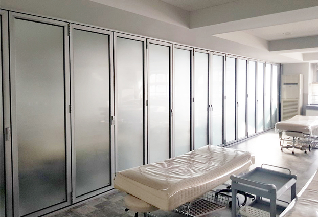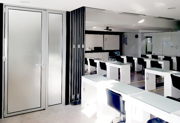 학생 수가 많은 반은 폴딩도어를 접어 넓게 실습 수업을 할수 있으며, 학생 수가 적은 반은 폴딩도어를 접어 그에 맞는 공간으로 실습 수업을 할수 있습니다.