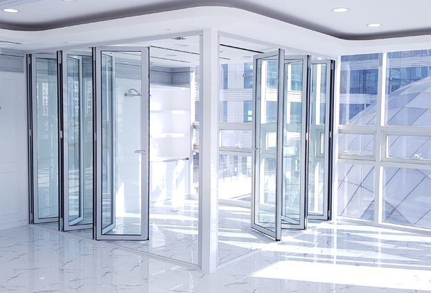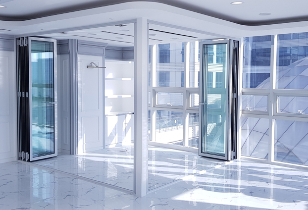 넓은 공간의 사무실 안에 공간 분리를 위해 스마트 폴딩도어를 설치하였습니다. 폴딩도어의 단점을 보완한 우수한 스마트폴딩도어를 설치함으로써 또 다른 공간을 만들고, 주변 인테리어에 맞게 화이트 색상을 선택하였습니다. 그로 인해 공간분리의 답답함보다 더욱 깔끔하고 세련된 분위기를 냅니다.