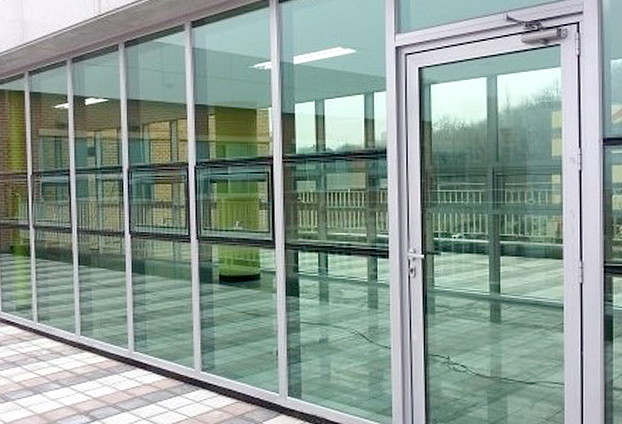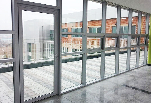 전체적으로 실버색상으로 설치를 하였습니다. 규모도 제법 컸습니다. 시원시원해 보이는 폴딩도어로 인해 건물이 더 예쁘게 보이는 효과도 있답니다. 학교에 있는 건물이다 보니 더욱 더 안전에 유의해서 튼튼하게 폴딩도어를 설치하였답니다.