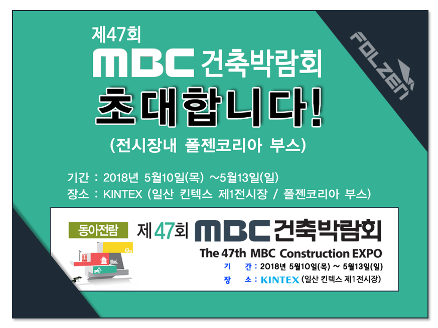 폴젠코리아가 제47회 MBC건축박람회에 참가합니다.