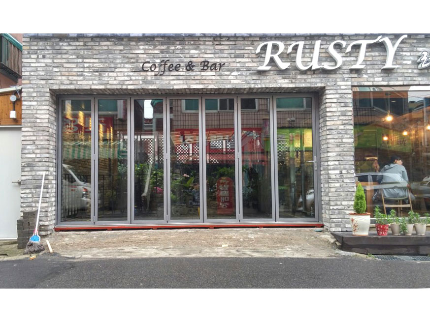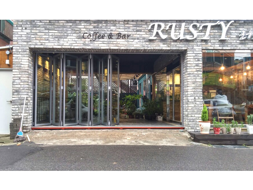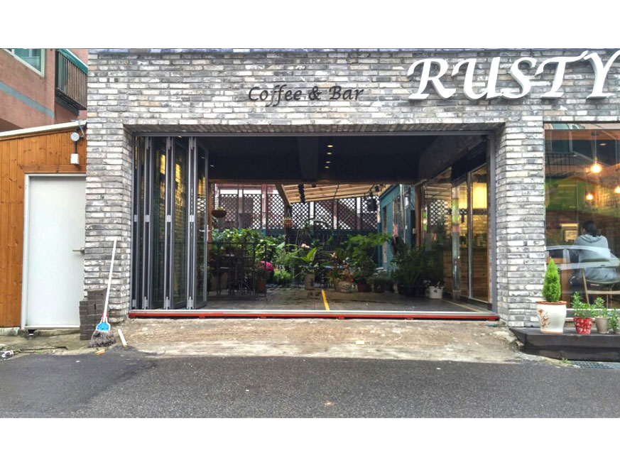 부천시에 위치한 아기자기한 예쁜 러스티 커피숍 입니다. 외부 폴딩도어를 시공하여 더욱 멋진 인테리어를 완성 하였습니다.