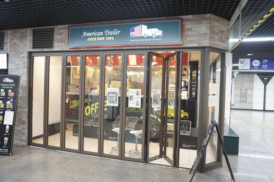 부평역에 위치한 쥬스바 외부 폴딩도어 시공 사례 입니다.