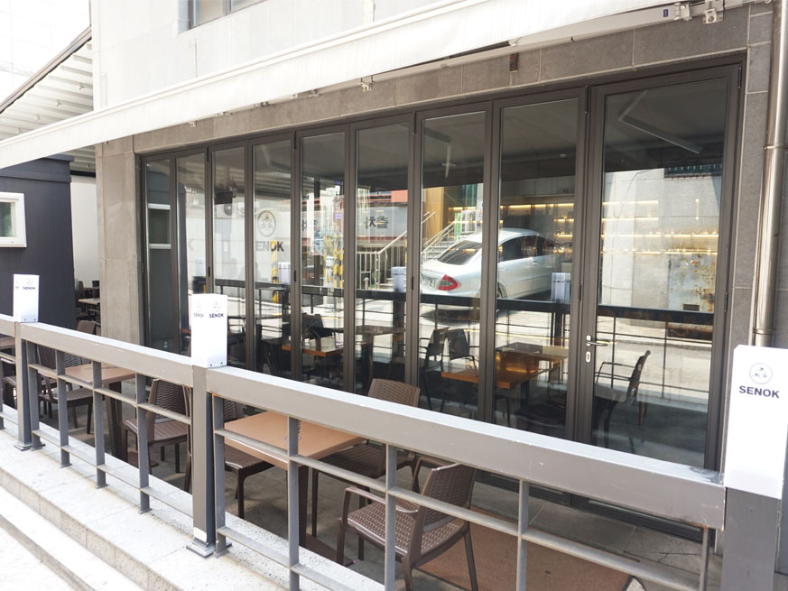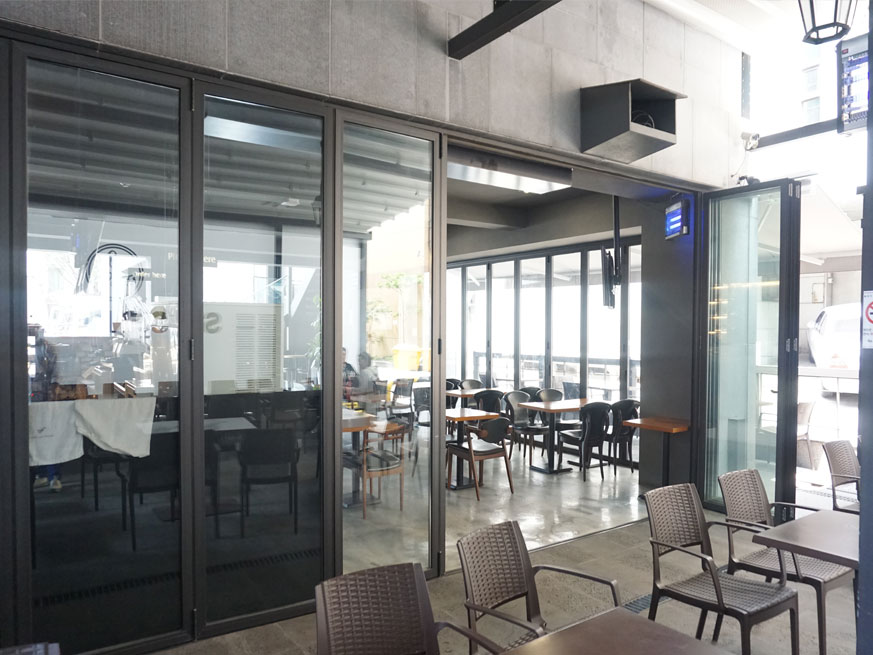 이수역에 위치한 세녹 카페 외부와 실내 폴딩도어 시공 사례 입니다.