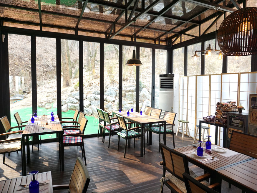 경기도 구리시에 위치한 마이첼시 레스토랑 & 카페 외부에 폴딩도어 시공 사례 입니다.