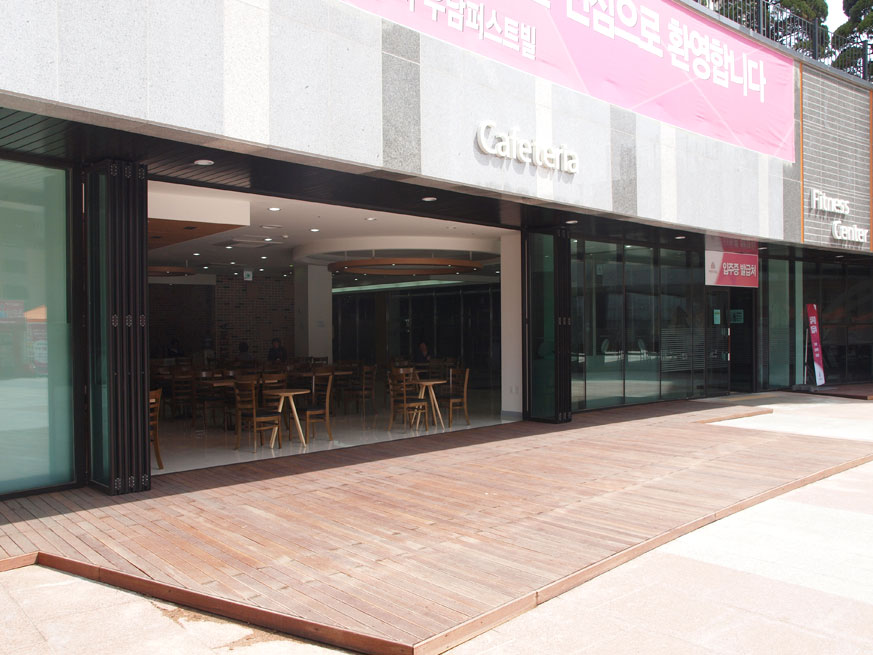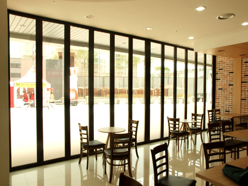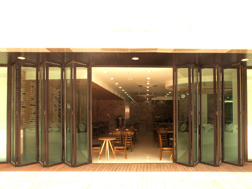 카페테리아 외부 폴딩도어 시공 사례 입니다.