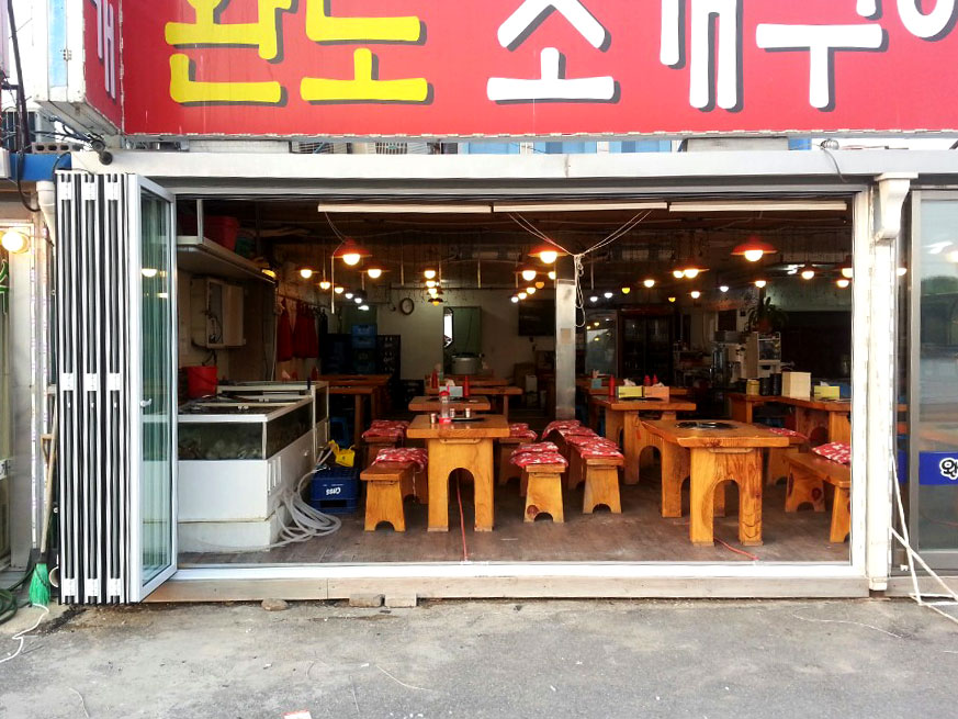 을왕리에 위치한 조개구이 매장 외부 폴딩도어 시공 사례 입니다.
