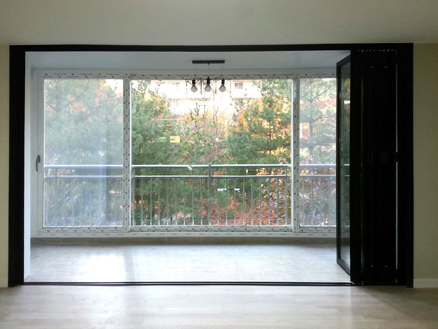 분당시에 위치한 유천 화인아파트 베란다 폴딩도어 시공 사례 입니다.