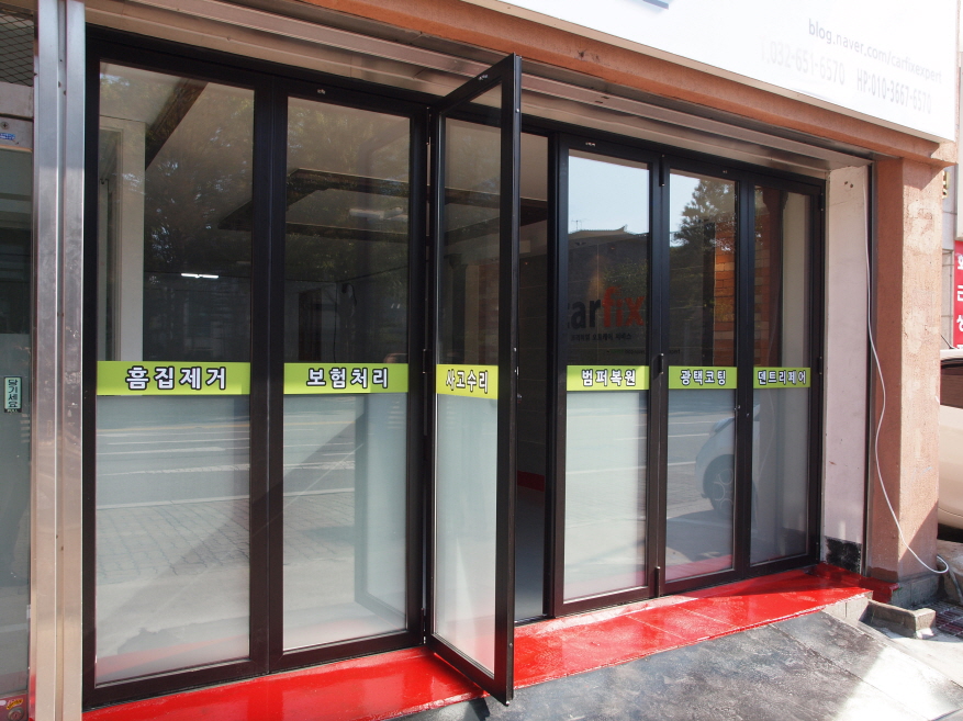 부천 상동에 위치한 카센터 폴딩도어 시공 사례 입니다.