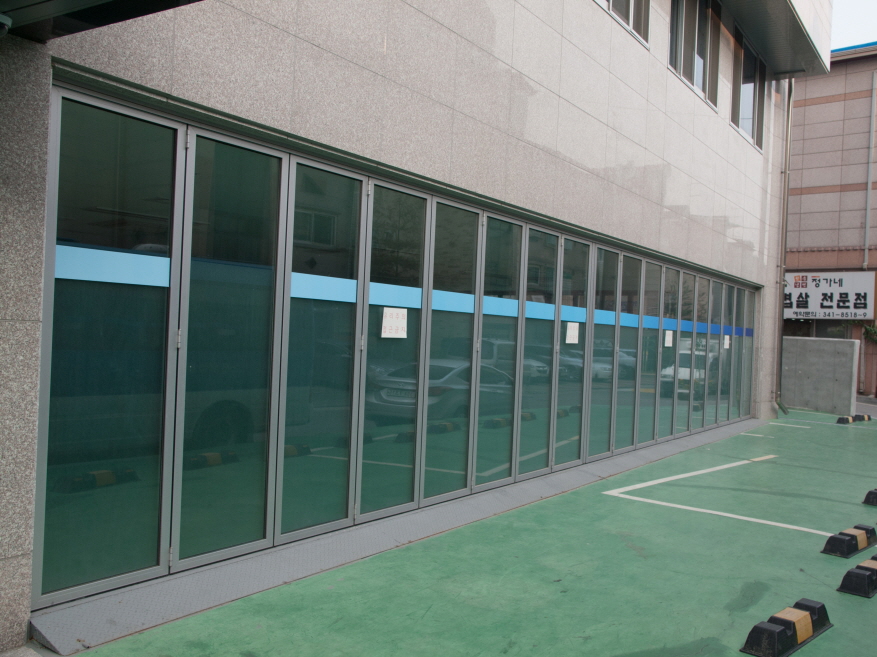 부천 소사 교회 주차장에 폴딩도어 시공 사례 입니다.