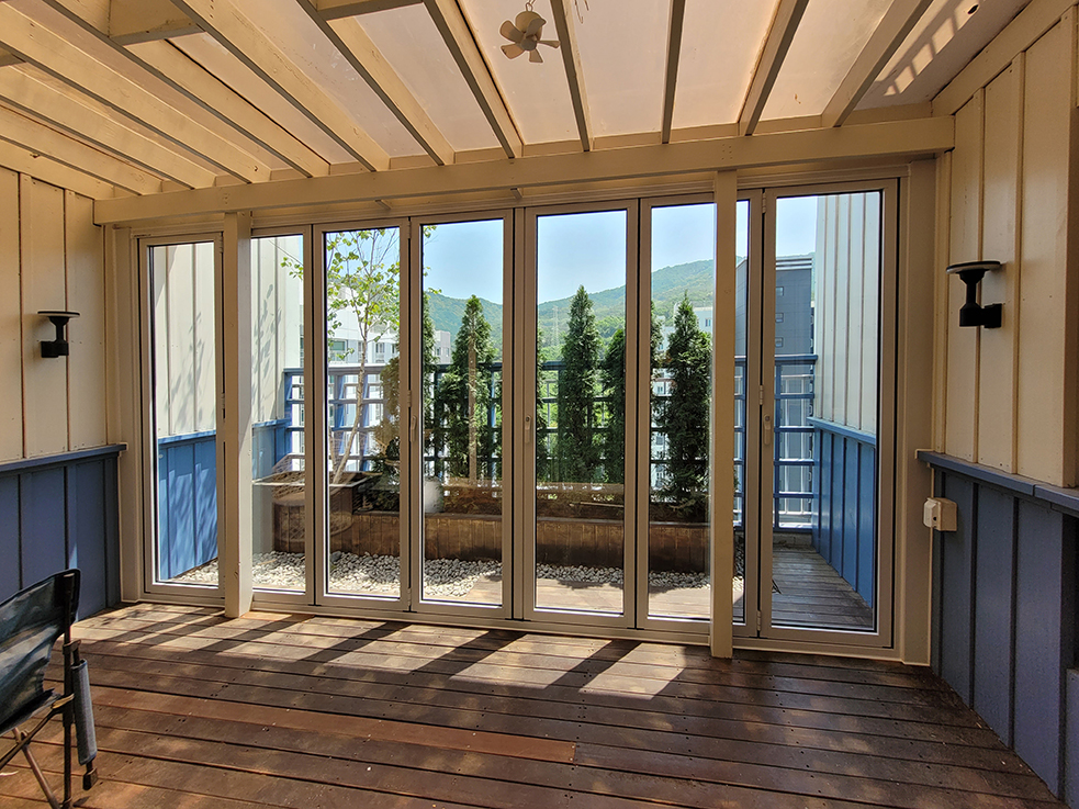 탑층에 넓은 테라스를 가진 아파트로, 그동안 도어가 없는 테라스 공간은 외부에서 들어오는 먼지, 비, 바람, 그리고 추운 계절에는 사용하기 어려운 단점이 있었습니다. 하지만 폴젠코리아의 폴딩도어를 설치함으로써, 날씨와 상관없이 테라스를 효율적으로 활용할 수 있는 공간으로 변화시켰습니다.