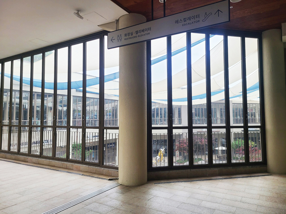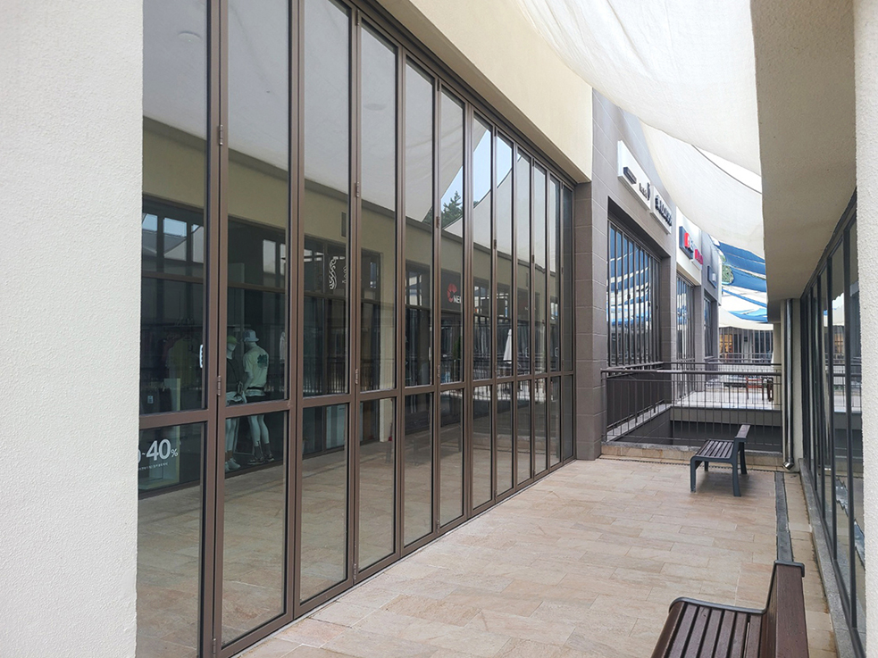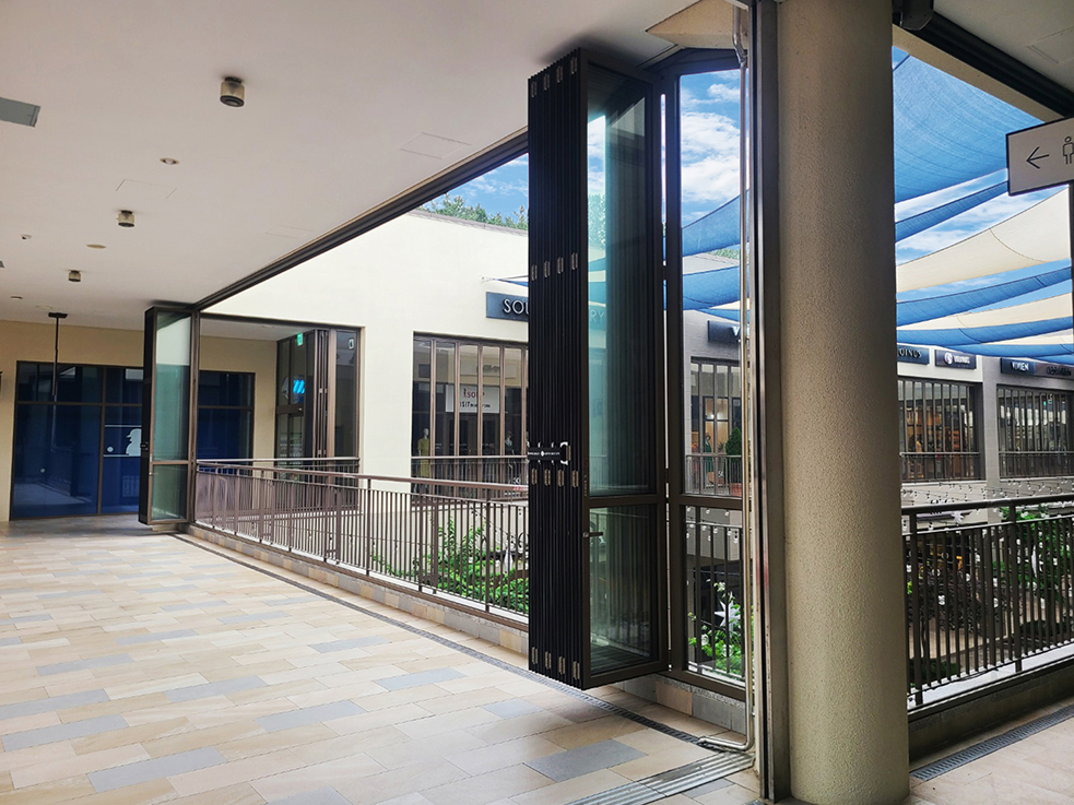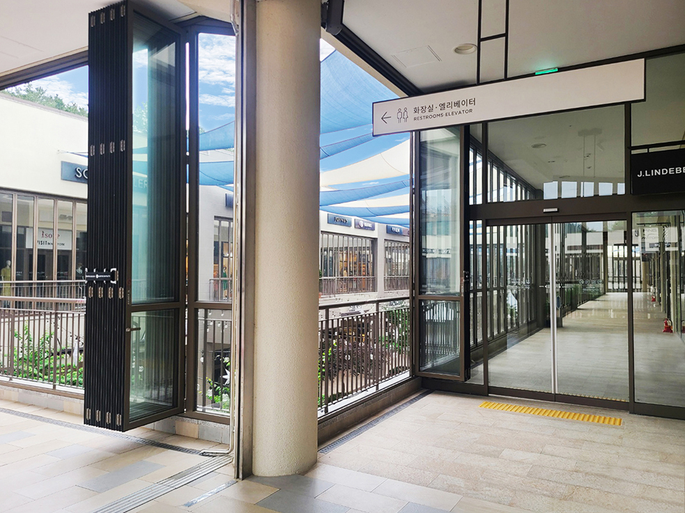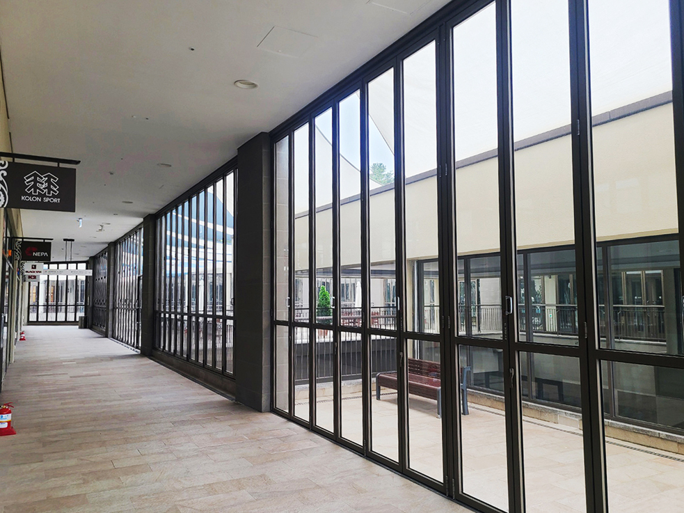 실외 공간까지 냉, 난방을 가동하여 사계절 쾌적한 공간을 만들기 위해 외부의 모든 공간에 폴딩도어를 설치하였습니다. 층고가 높아 미들바를 설치하여 안정감과 도어가 받은 힘을 분산시켜 오랫동안 사용하여도 틀어짐이 없도록 하였습니다.