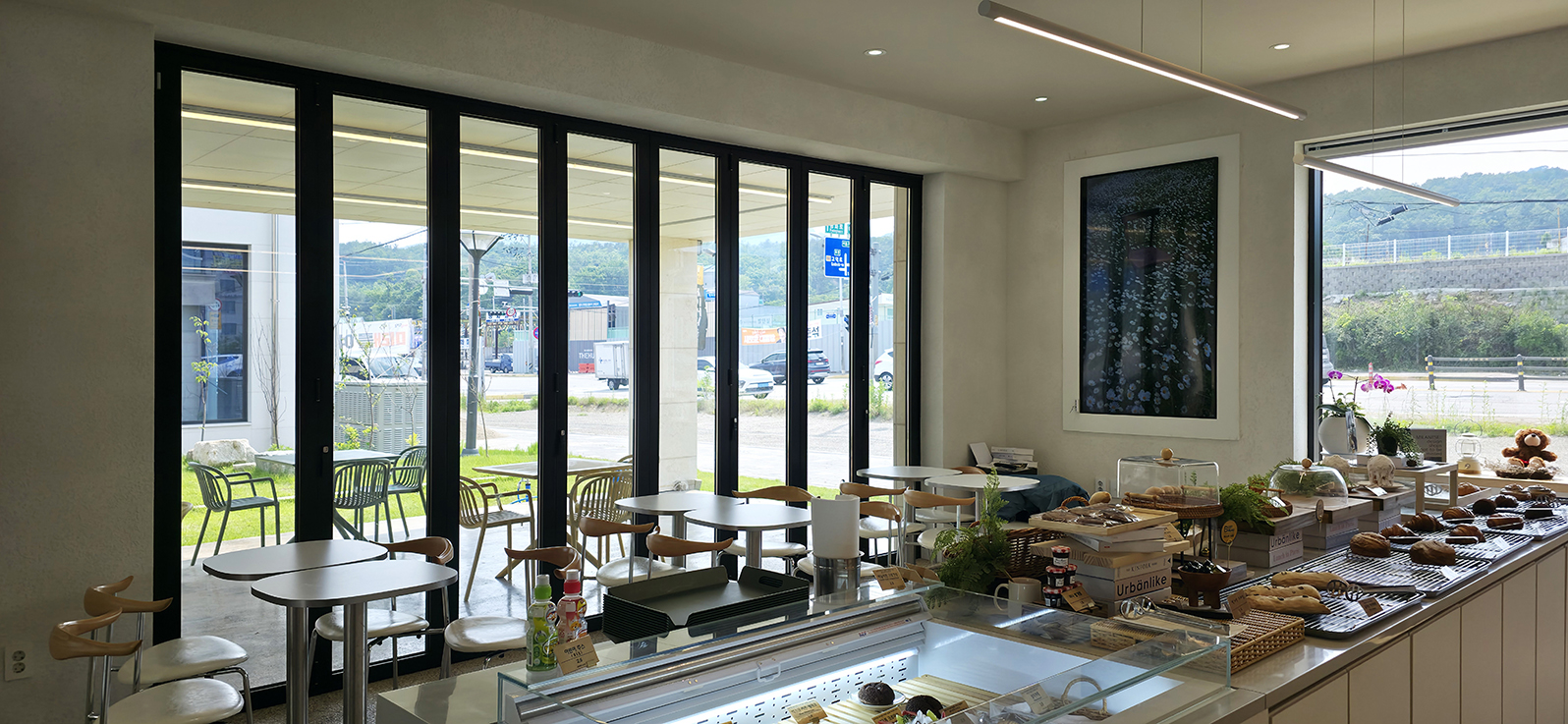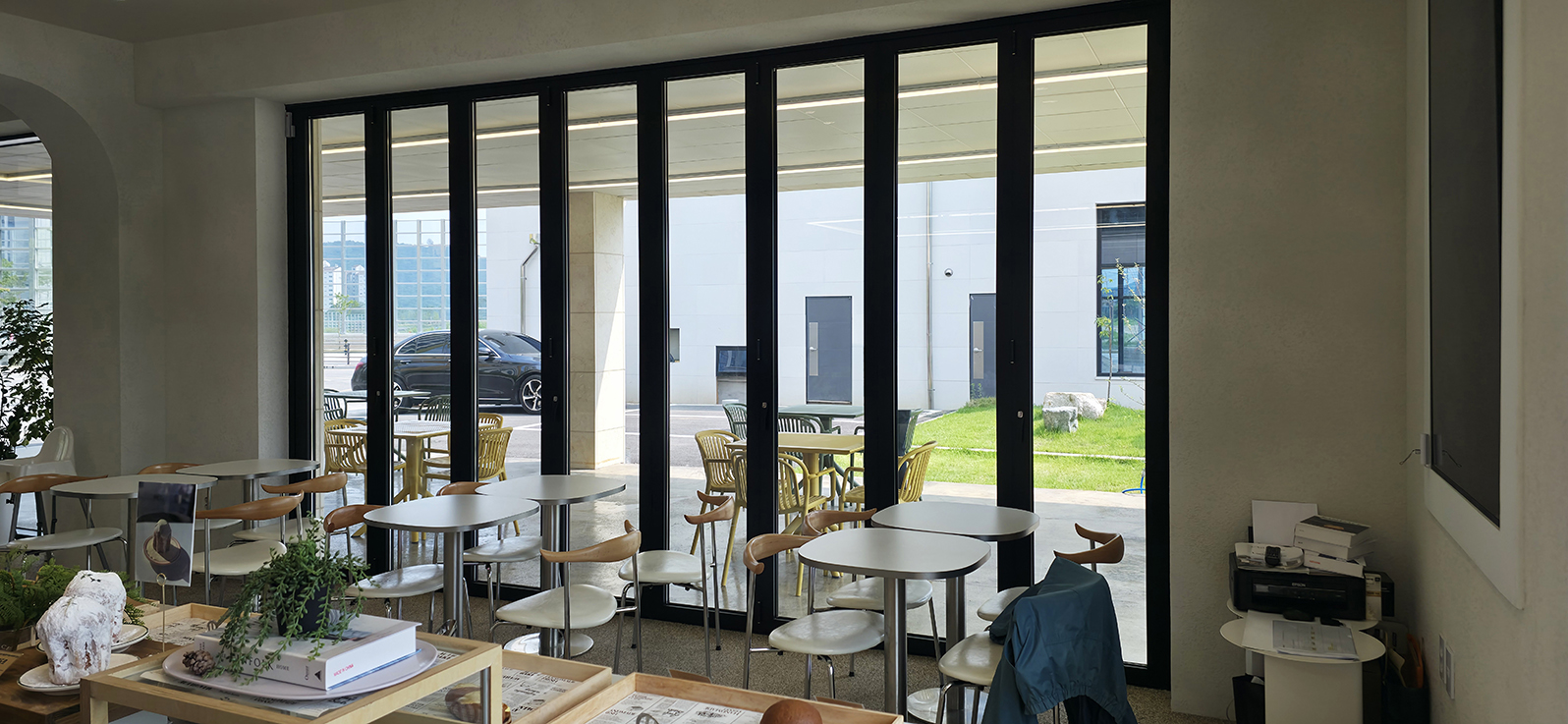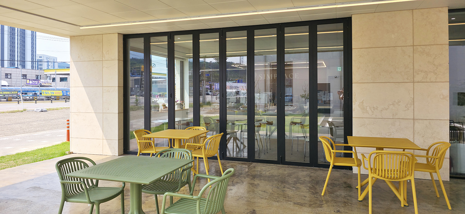 심플레이스 카페&디저트 양주점은 고객에게 더욱 쾌적하고 세련된 공간을 제공하기 위해 폴딩도어를 설치하였습니다. 폴딩도어는 공간 활용도를 높이는 동시에, 매장 내부와 외부를 자연스럽게 연결해주어 탁 트인 개방감을 선사합니다. 이를 통해 자연 채광과 환기가 원활해졌고, 계절에 따라 자유롭게 열고 닫을 수 있어 고객들의 만족도 역시 높아졌습니다. 또한 모던한 디자인의 폴딩도어는 매장의 인테리어와 조화를 이루며, 심플하면서도 고급스러운 분위기를 한층 강화시켜 주었습니다. 이번 설치는 단순한 인테리어 변경을 넘어, 고객 경험을 중심으로 한 공간 개선의 일환으로 큰 의미를 갖습니다.