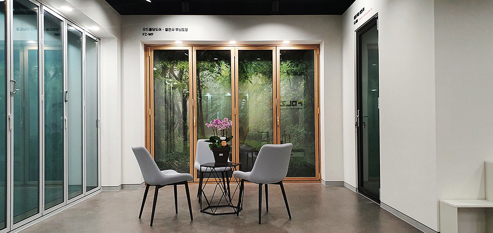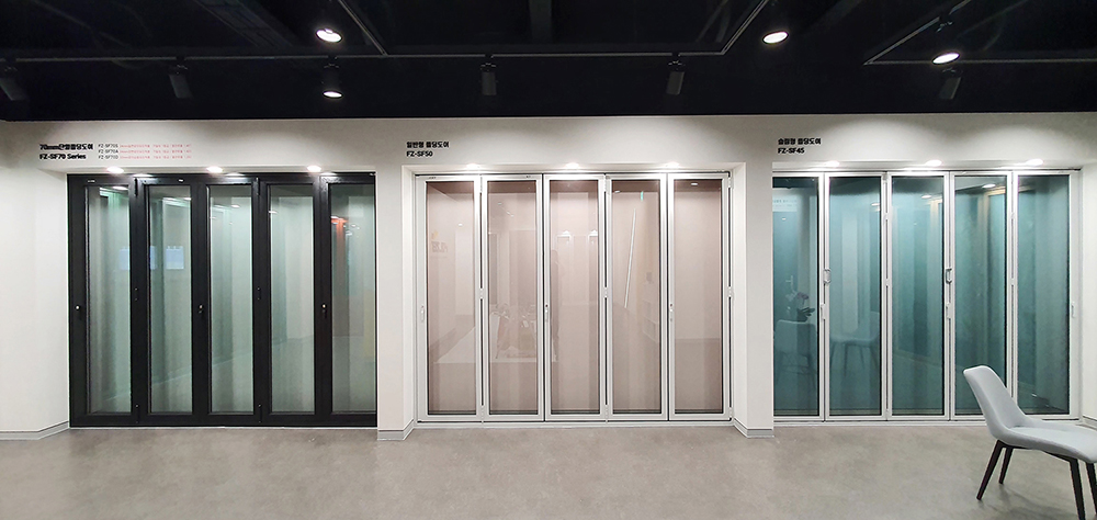저희 폴젠코리아 전시장에 방문하셔서 직접 다양한 종류의 폴딩도어를